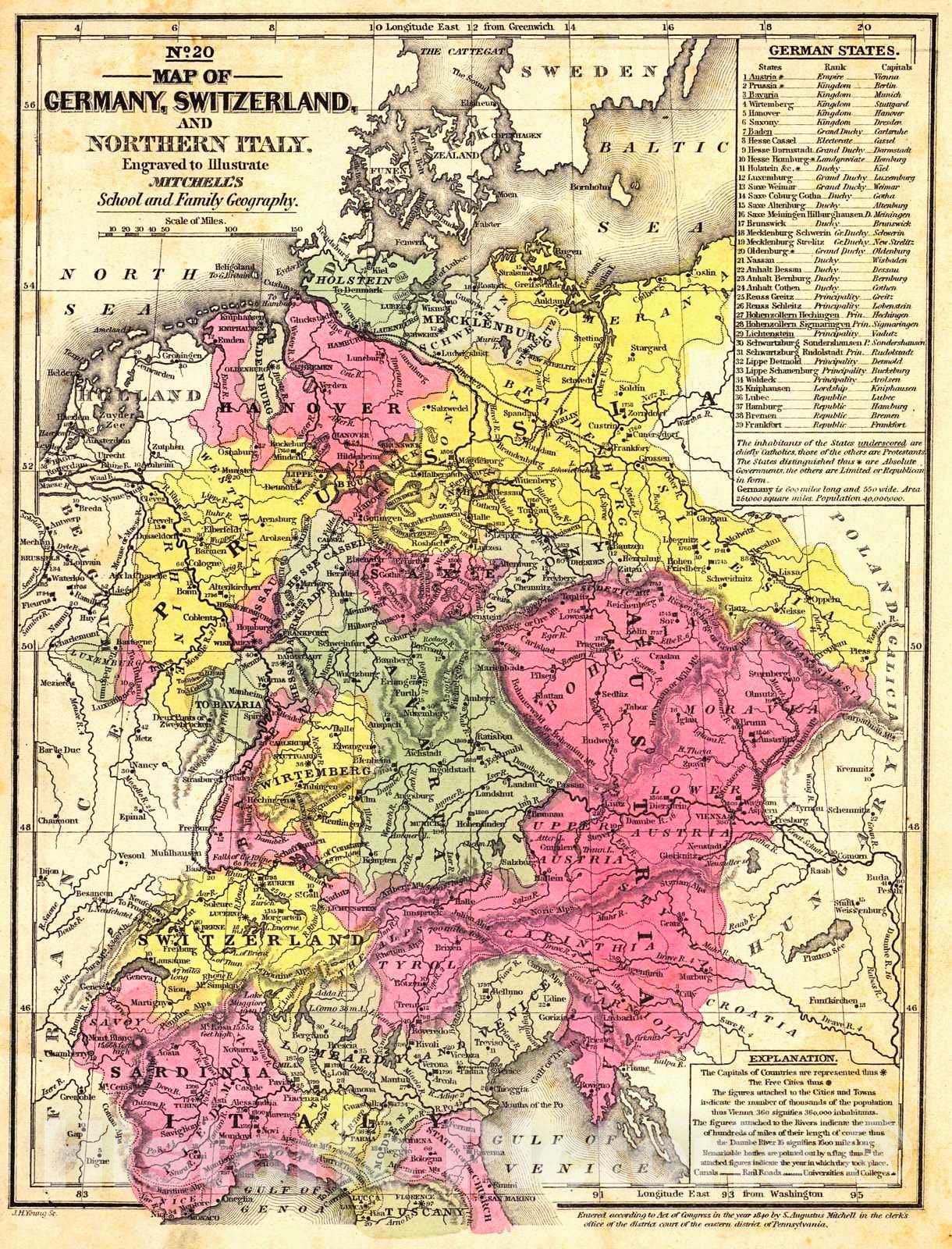 Historic Map : 1840 Map of Germany, Switzerland, and Northern