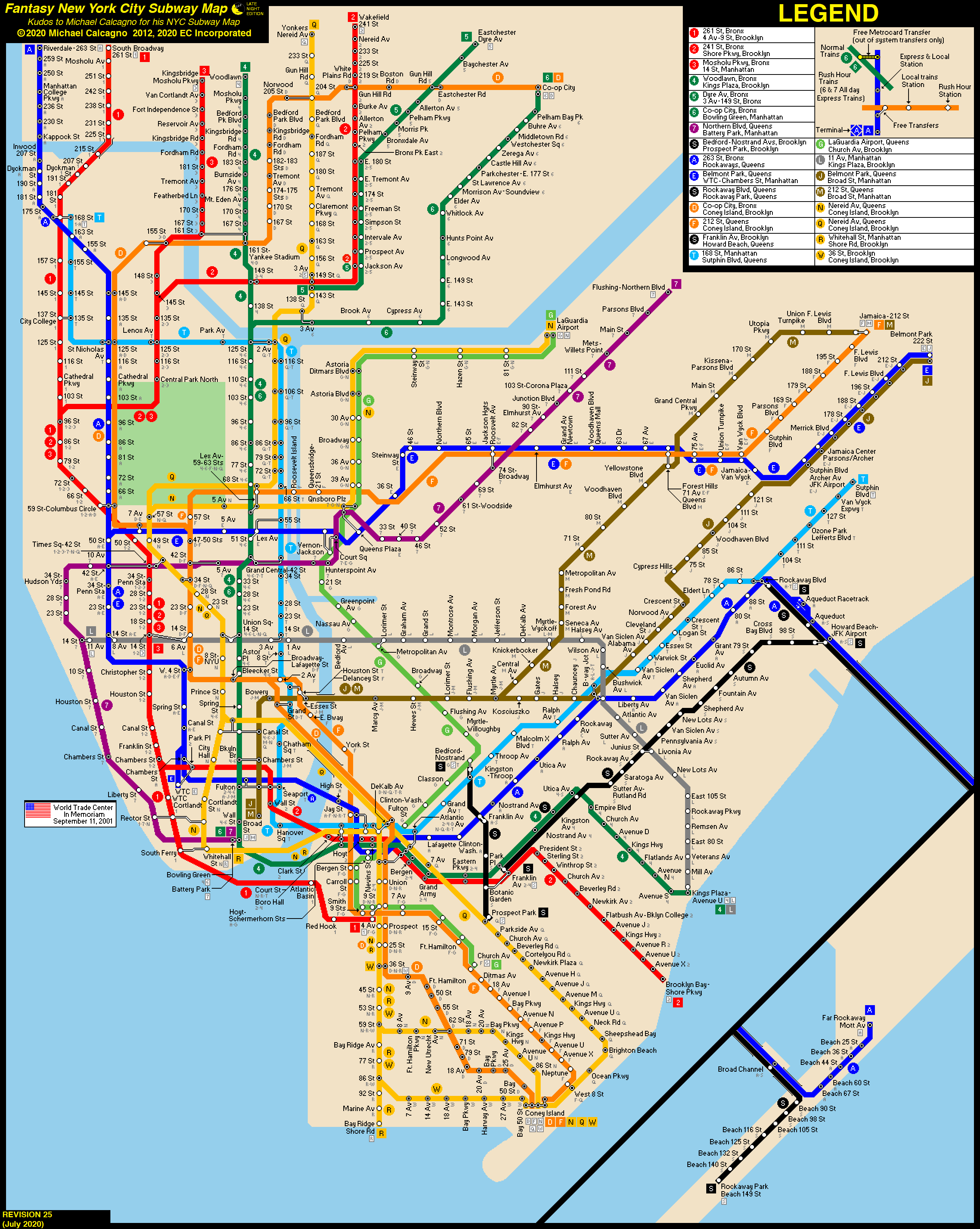 NYC Subway Fantasy Map (Revision 25: Late Nights) by ECInc2XXX on