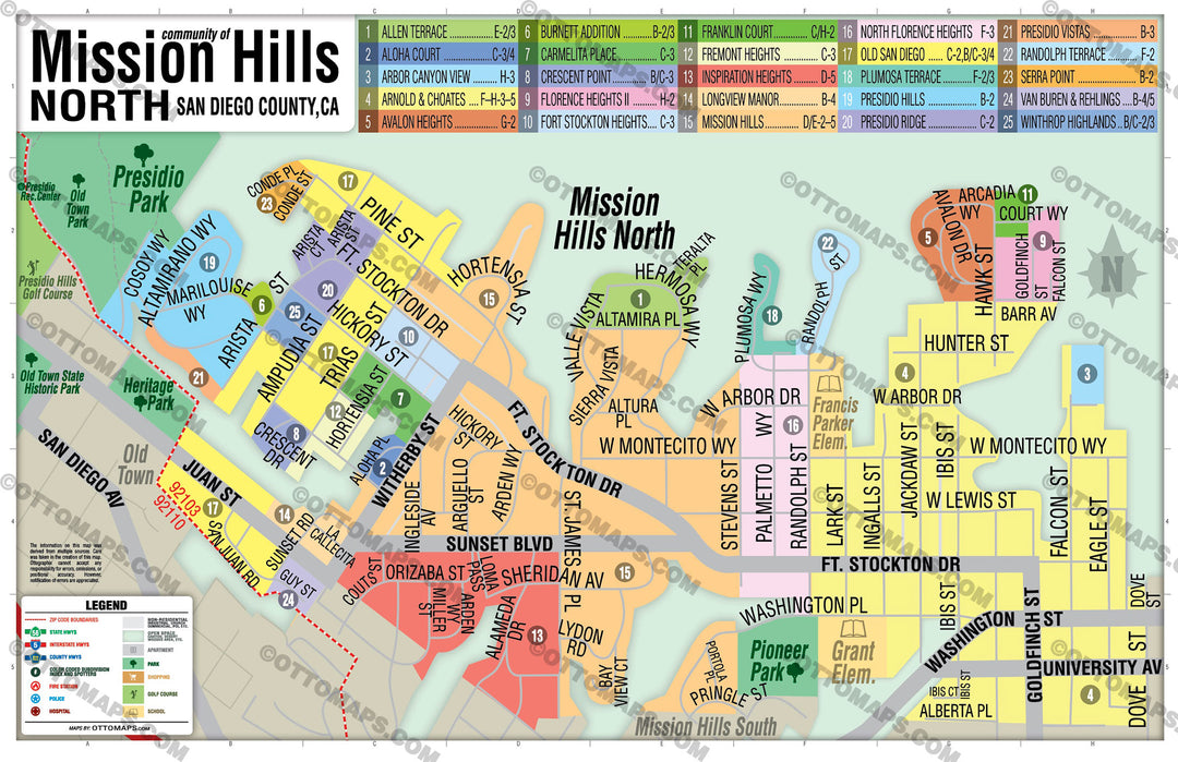 Mission Hills Map North, San Diego County, CA โ Otto Maps